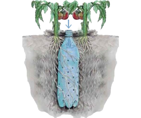 Можно поливать в бутылки – у горлышка делают отверстия, вставляют в землю на глубину 15-20 см, такая система полностью раскрепощает огородника – таких бутылок можно использовать сколько угодно много: