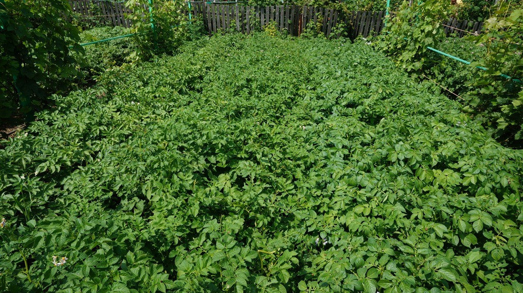 Несколько слов о картофеле. Главное, что площадь под картофель продолжает сокращаться: из 9-ти постоянных грядок осталось 8 – занимаем под школки смородины, малины и т.д. Для картофеля погода была вполне подходящая – пока было холодно весной – она во влажной земле сидела, наращивая корневую систему. По теплу взошла – мы её замульчировали, она начала активно расти – кусты стояли мощные, здоровые, сомкнулись – даже дорожек не было видно. Весь июнь дожди и комфортная температура для неё +20-25С. Из множества сортов остались самые «стойкие», без болезней, вкусные, урожайные. Можно назвать следующие сорта: Сапрыкинский, Ельчанка, Сантэ, Сагитта, Брянский деликатес, Красавчик, Тулеевский и др.
