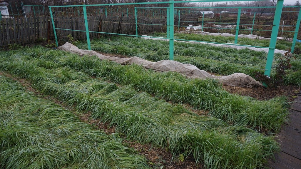 Когда пошло тепло, а это уже конец мая, июнь, проснулись спящие дополнительные почки, растения восстановились, а вот урожай считай был потерян. Помогала ему корневыми и внекорневыми подкормками. Однако созревание лоз на зиму тоже оттянулось почти на месяц. Только благодаря тёплой продолжительной осени всё поправилось – удалось во время обрезать, обработать, связать и уложить под нетканый материал лозы, где они, надеюсь, дозревали и чувствуют себя хорошо. В этом году попробуем укрыть побеги винограда геотекстилем Дорнит №200. Он шириной 2.15 м., сложили его вдвое и укрыли всю ширину ряда.